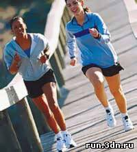Если спортивная ходьба - наиболее легкая в плане нагрузки, то бег уже заставит легкие перекачивать довольно большое количество кислорода. Аэробные движения при беге действуют на организм активнее. В принципе можете начинать прямо с небольших пробежек. Они поднимут тонус, окажут оздоровительный эффект, восстановят и укрепят мышечную и костную системы. Бег быстрее приведет организм в норму. Бег способствует развитию легких, укрепляет сердечную мышцу, способствует обмену веществ, довольно быстро снижает вес, благотворно влияет на нервное состояние. На него отводите как минимум 30 минут в день, это для начинающих. И лучше всего комбинировать его с ходьбой, а тем, кто уже ранее делал небольшие пробежки, это время можно увеличить до часа. В утренние часы лучше всего проводить занятия с 6.30 до 7.30, когда организм лучше всего воспринимает нагрузку на мышцы. Если не имеете возможности пробежаться в столь ранние часы, то в дневное время, с 11 до 12, существует еще один пик активности, и третий пик приходится на 16-18 часов. В утренние часы лучше укрепляются нервная и сердечная системы. Поскольку организм еще не вошел в дневной ритм, он будет спокойно воспринимать нагрузку, а тишина вокруг благотворно подействует на нервы. В дневные часы задействован мышечный тонус, вы уже достаточно "разогреты" к началу занятий, и бег только подкрепит уже полученную нагрузку на мышцы. А в вечернее время идет максимальное снижение мышечной массы, т. к. организм уже сжег часть калорий и будет затрачивать те, которые отложены в жировой ткани. Бегу необходимо уделять как минимум два дня в неделю. Часы занятий желательно выбирать одни и те же. Организм привыкает к нагрузке в определенные часы - и через некоторое время сам будет напоминать об этом. Когда немного втянетесь, можно увеличить длительность пробежек или перейти на занятия три дня в неделю. Возможны также ежедневные занятия по полчаса. Детям и пожилым людям стоит ограничиться получасовыми пробежками 1-2 раза в неделю, а остальные могут регулировать нагрузку в зависимости от общего состояния и подготовленности. Бег, как и ходьба, может быть отдельным видом спорта или служить разминкой перед основным занятием. В этом случае также достаточно получасовой пробежки каждый день. Если простой, монотонный бег в течение получаса снизит вес на 300-400 г, то, чередуя быстрый и медленный бег каждые 5 минут, эту цифру можно увеличить до 500 г за полчаса занятий. К тому же коррекционный бег более эффективно укрепляет сердечную мышцу. Поскольку при беге человек получает довольно большую нагрузку, то и противопоказаний к нему достаточно. Если у вас ограниченная сердечная деятельность (перенесенные заболевания, хирургические вмешательства, высокое или низкое артериальное давление), пожалуй, стоит ограничиться ходьбой, а бег, причем в медленном темпе, можно использовать только как небольшое увеличение нагрузки. Людям, страдающим варикозным расширением вен, не рекомендуется заниматься такими пробежками. Противопоказанием являются большая потеря зрения, астма и другие заболевания дыхательной системы. Болезни эндокринной системы, камни в почках, в селезенке, воспалительные процессы в мочеполовой системе тоже ограничивают занятия бегом. При таких заболеваниях лучше заняться ходьбой. При перенесенных травмах позвоночника заня